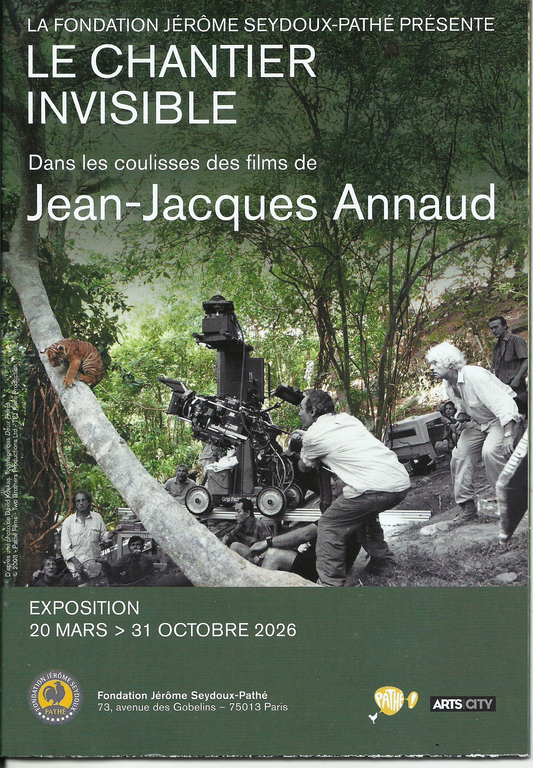La Fondation Jérôme Seydoux-Pathé pousse les portes des plateaux de tournage de Jean-Jacques Annaud un des plus célèbres cinéastes français international.  Le chantier invisible dévoile les secrets de fabrication de ses films, de ses fresques monumentales, de ses reconstitutions millimétrées, de ses défis techniques extrêmes. L’exposition dévoile, pour la première fois, l’envers de ses décors et ses plus grands secrets.  De La Victoire en chantant à L’Ours, de La Guerre du feu au Nom de la rose, de Sept ans au Tibet à Deux frères, l’œuvre de Jean-Jacques Annaud traverse les continents, les époques et les imaginaires. Dès son premier long métrage, La Victoire en chantant, couronné de l’Oscar du Meilleur film étranger en 1977, se dessine une méthode de travail singulière qui signe la carrière du cinéaste :